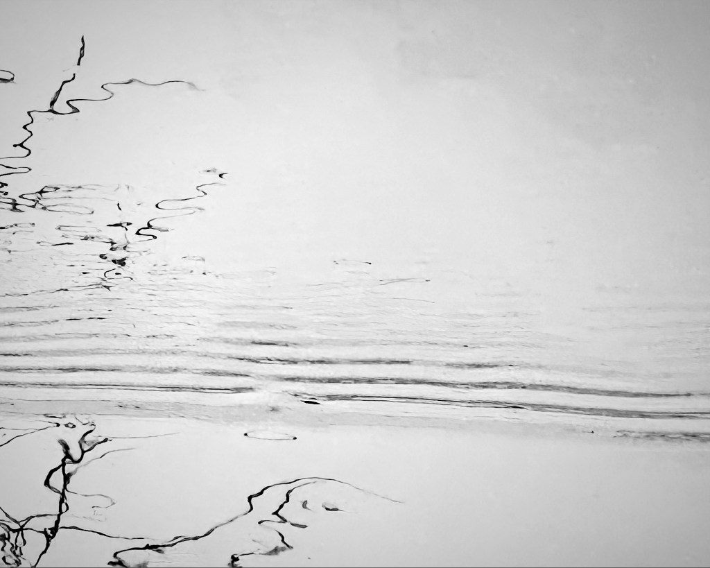 Artist Statement: Wetlands are my happy place. I live on the rural Charles River in the woods. The surface of water, whether it’s a river, a lake, a brook or a puddle, is an amazing canvas––where nature produces the art. Water reflects the energy of life. It’s constantly changing, eternally new. I gaze into water––river, brook, swamp––in all seasons to see images that allow me to understand myself and the world. “Brush Strokes” is an image I took one morning under a gray sky. Standing in the middle of the trestle bridge that crosses the Charles River, I looked down the soft current under soft light and saw an image that reminded me of a Chinese painting in black ink on pearl colored silk. It was an image as if made from the stroke of an artist’s brush. It felt to me as if an artist created it from a quiet and reverent intention. Immediately, I could breathe more deeply. I took the image with my I-phone. Now, my creative spirit was fed. I had made something from nature: a picture that calmed me, elevated my thoughts, nourished my aesthetic appetite. In less than a split second, the image vanished from the river. But it changed me, and I was glad.
