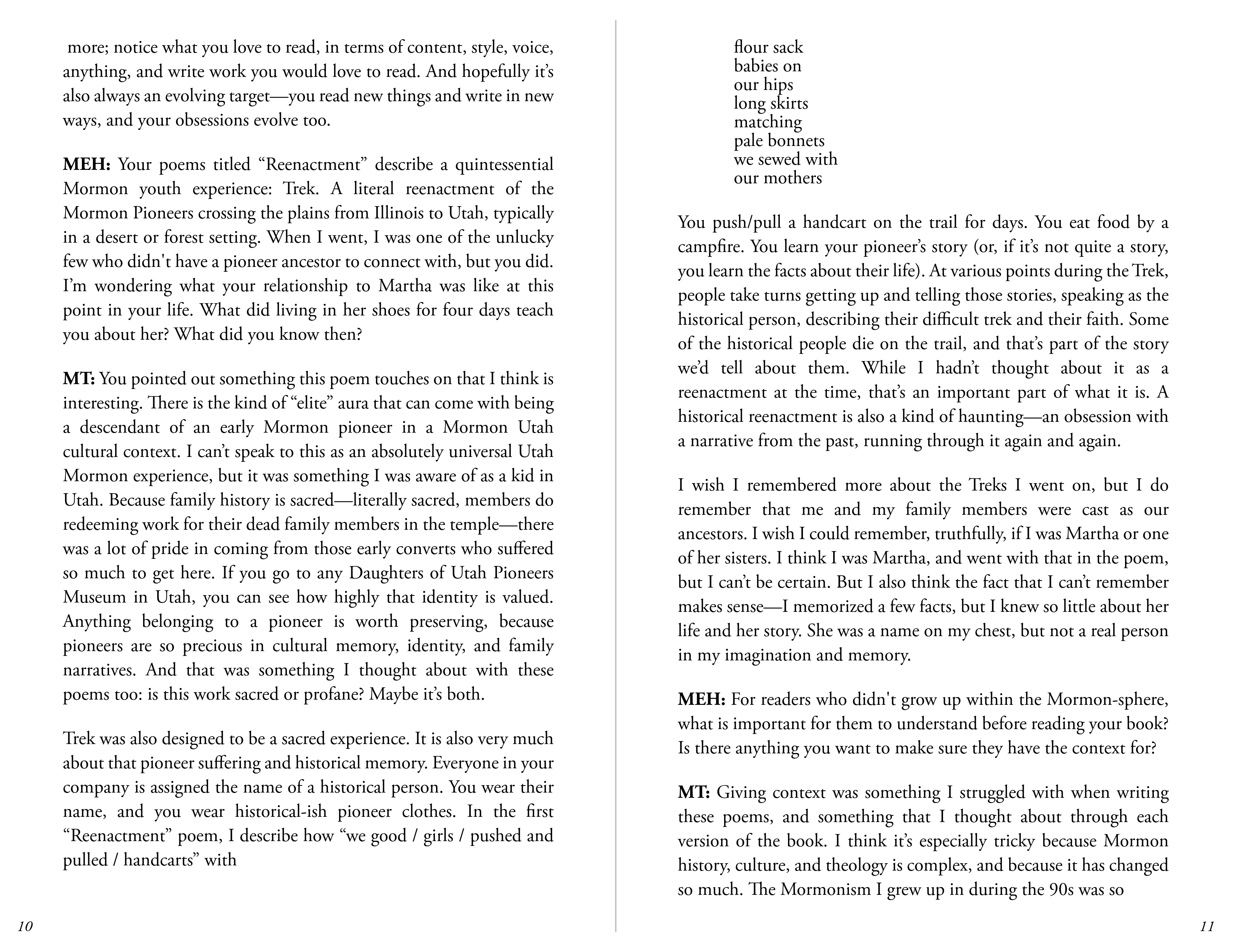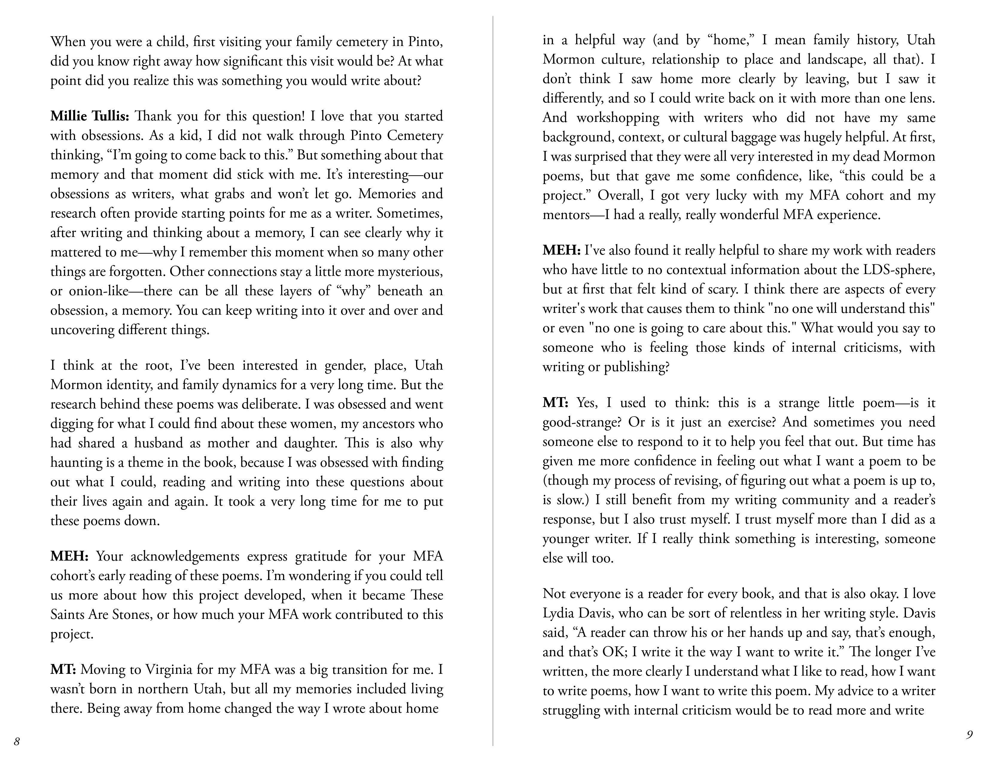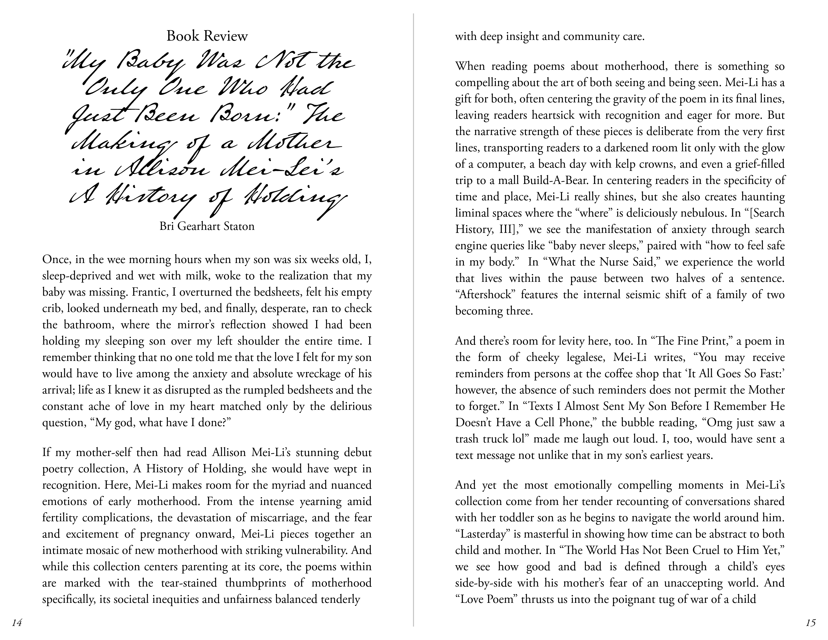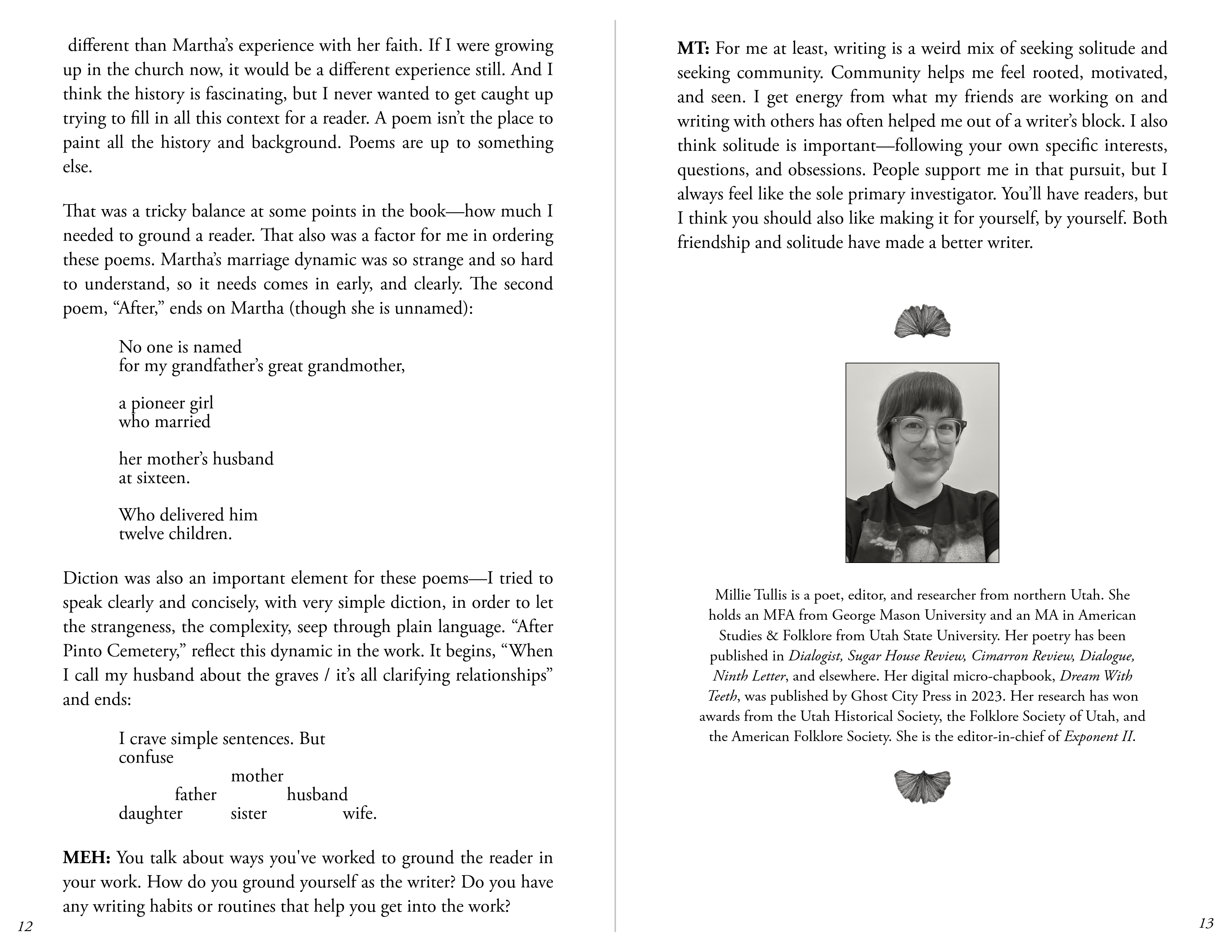 The Spring 2026 edition of “The Turning Leaflets” is accidentally, but excitingly so, poetry-forward. Megan Eralie-Henriques’s editorial letter reflects on the National Poetry Month challenge to write a poem a day and the value of practice. A craft essay from Jacob Butlett, Volume 1, issue 2 contributor, investigates the power of using writing prompts to spark creativity and meaning-making in poetry. Then, an interview with Millie Tullis in celebration of their debut poetry collection, These Saints Are Stones, where Millie shares a little about the process of bringing research and personal history to their work, and how to ground both the reader and the self as writer within that work. Finally, Bri Gearhart Staton’s review of TTLJ’s reader Allison Mei-Li’s A History of Holding: Poems on Motherhood closes out the leaflet.