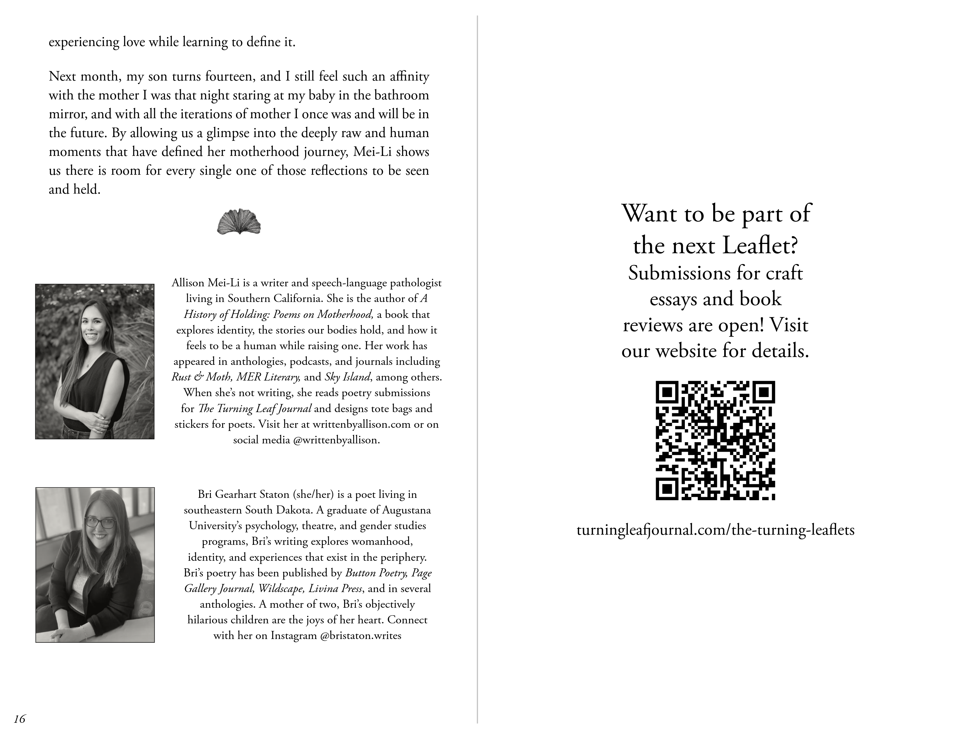 Everyone who submits work to The Turning Leaf Journal for Volume 3, Issue 1 will be entered to win copies of both Millie’s and Allison’s books!